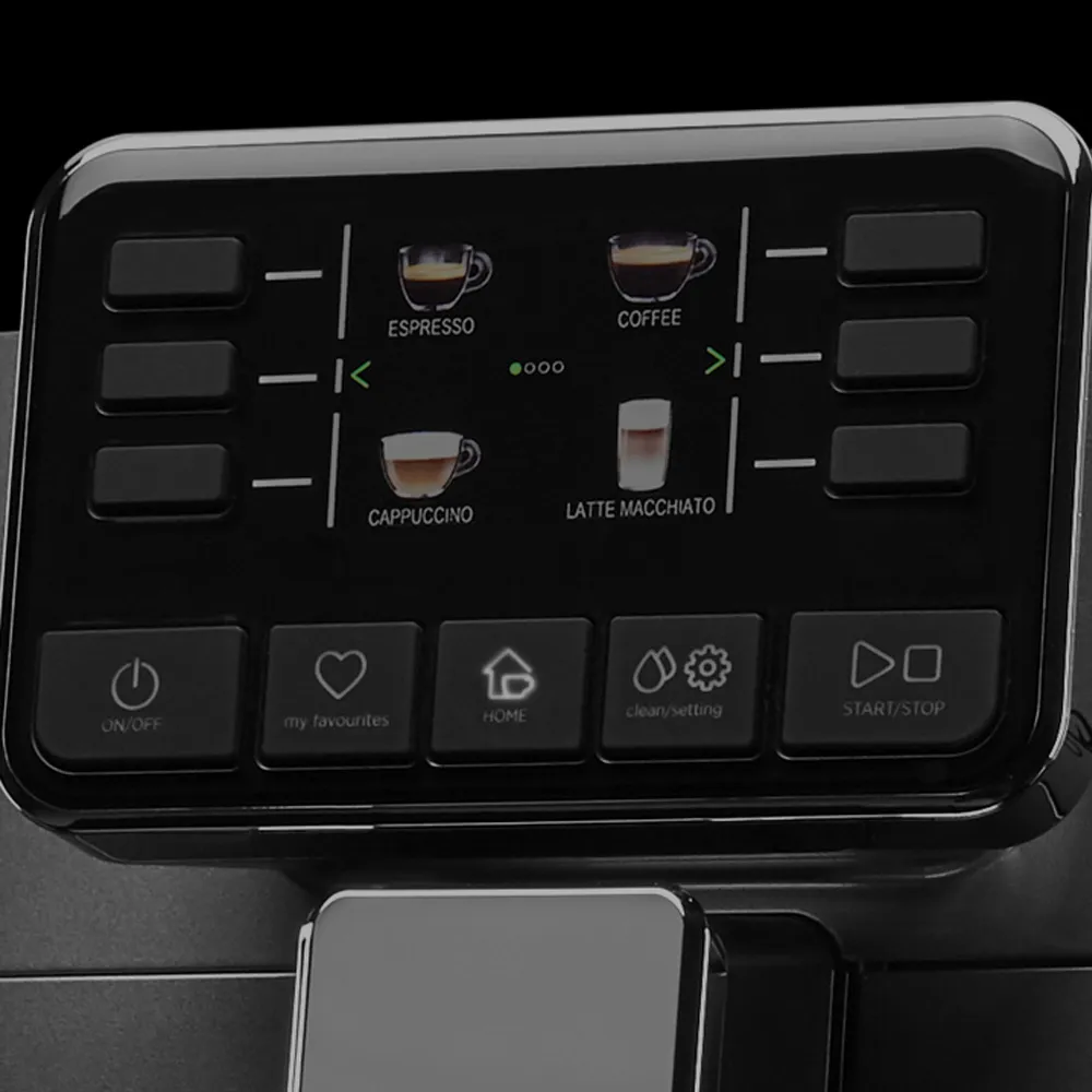 High technology made simpler thanks to a wide screen to have all settings at a glance. Tailored around your needs, easy, intuitive and fully detailed, it guides you through personalization, brewing and cleaning functions.
