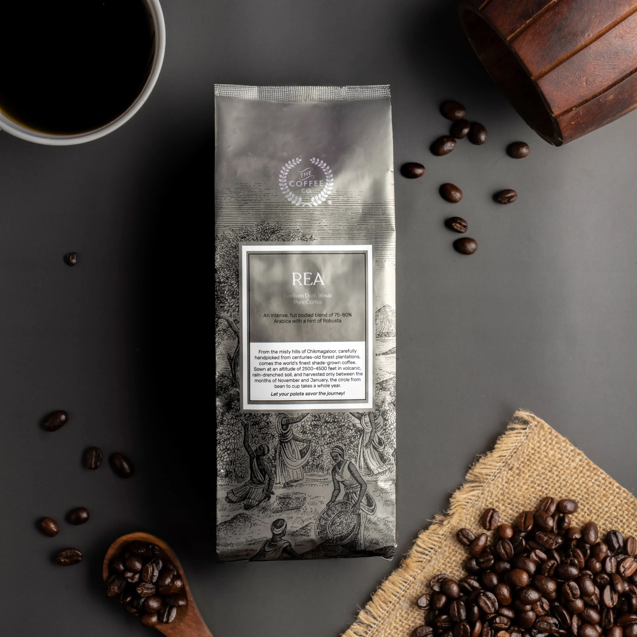 A full-bodied blend made with 75-80% Arabica beans, Rea packs an intense flavour. Low on acidity, it makes for the perfect espresso to start the day with. Recommended brewing techniques: Espresso machine, French Press and South Indian Filter Coffee Maker