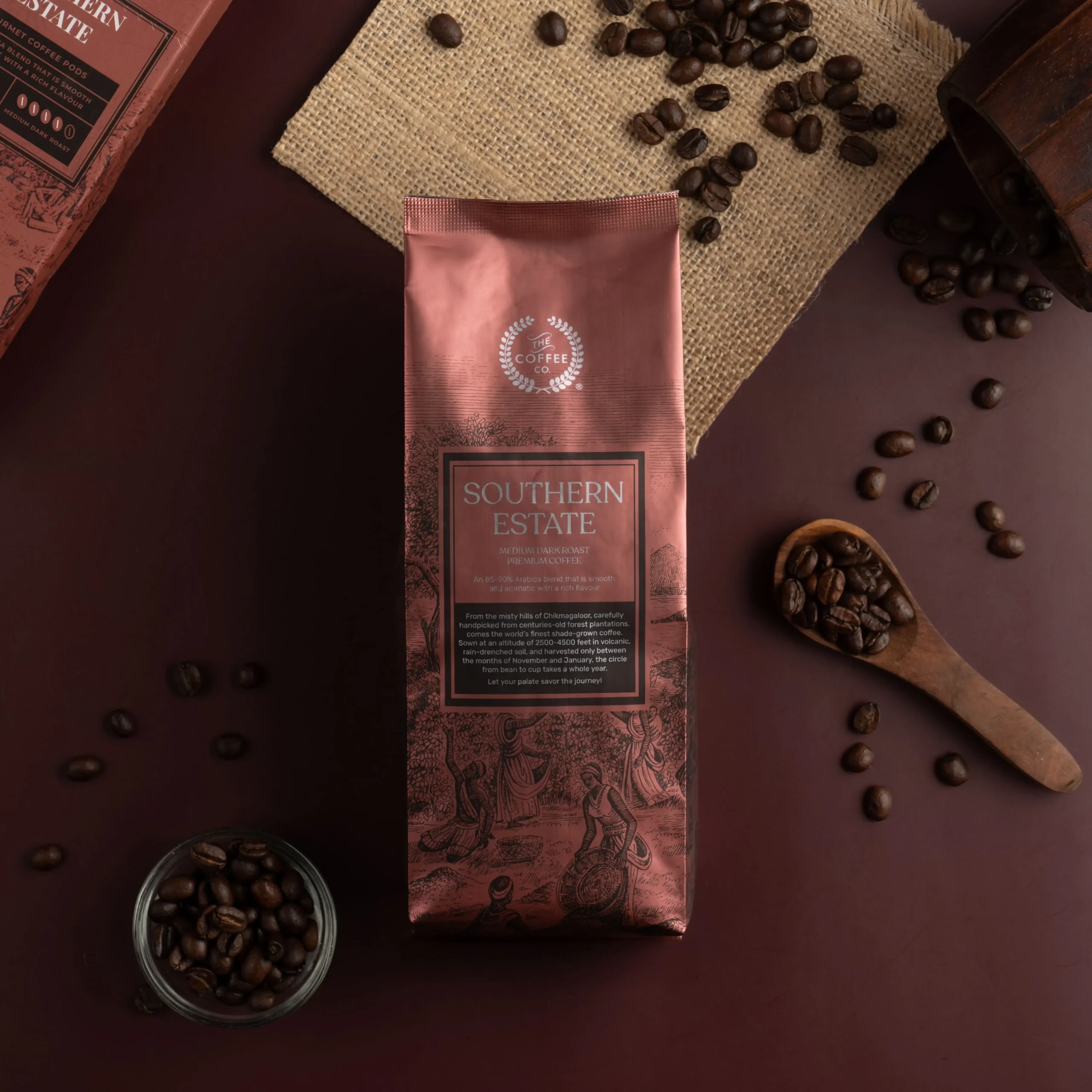 We offer a curated selection of specialty-grade Arabica blends, including medium dark and medium roasts. Our beans are sustainably sourced from Chikmagalur and other high-elevation estates across South India.